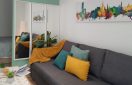 vista salon y cocina lovely center apartments alameda con dormitorio al fondo